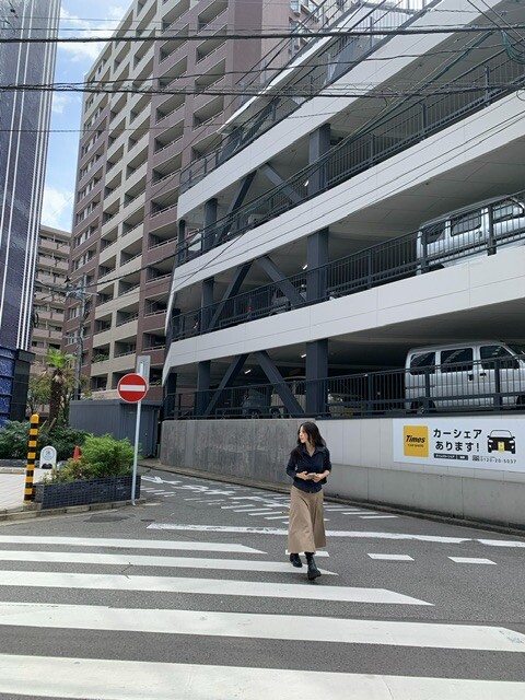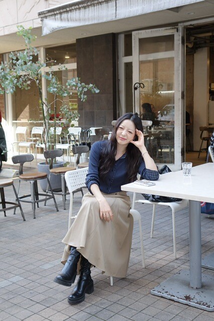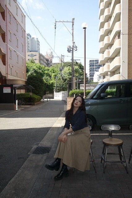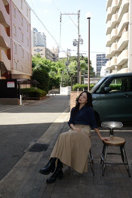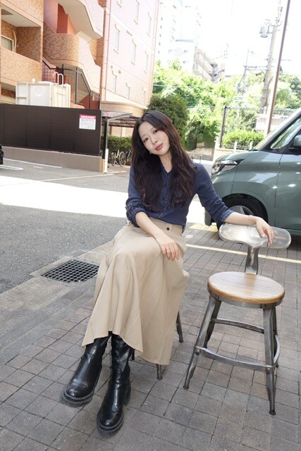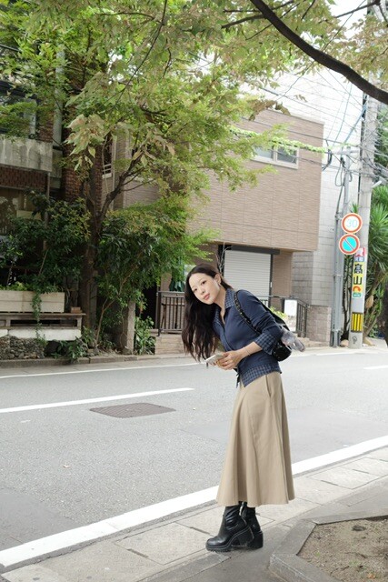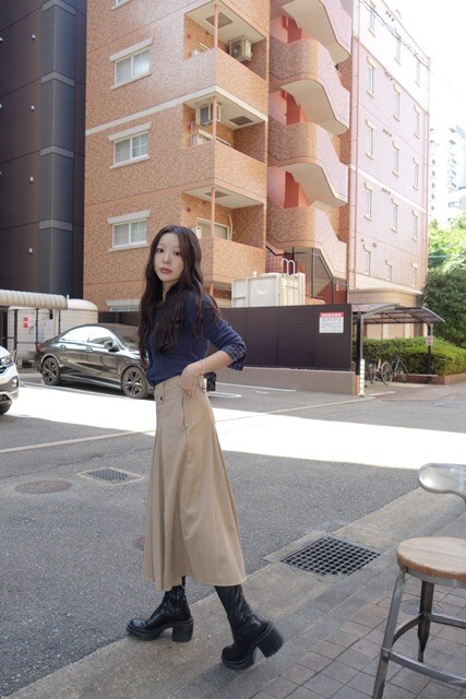 클래식하면서도 세련된 무드가 느껴지는 A라인 버튼 디테일 스커트예요.
