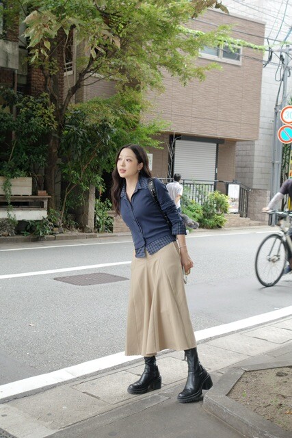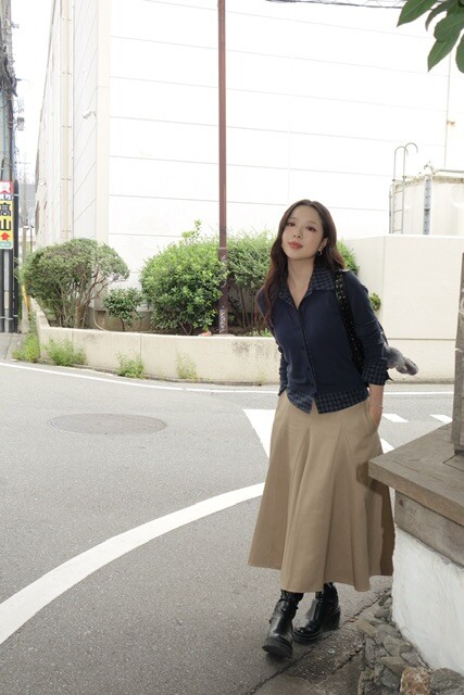 풍성하게 퍼지는 플레어 라인이 걸을 때마다 멋스러운 실루엣을 완성해 줘요.