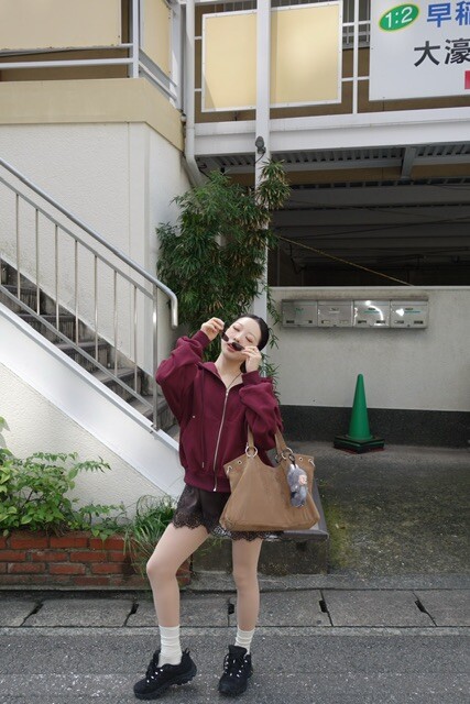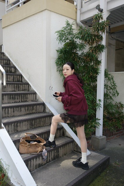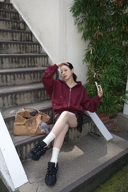 기장감이 적당하고 스터드로 트렌디한 포인트가 되어 다양한 하의와 매치하기 좋아요.