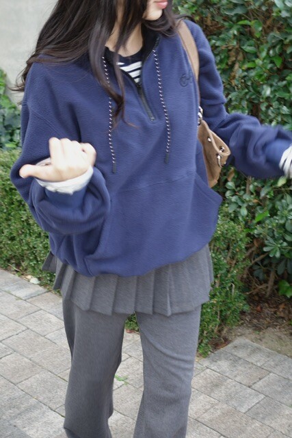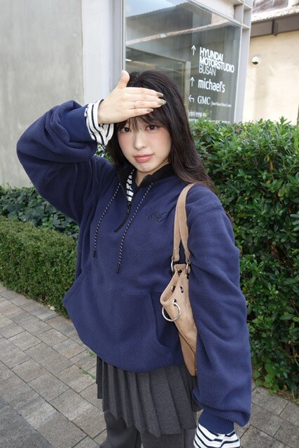 반집업 디테일을 더해 착용 방식에 따라 다양한 분위기를 연출할 수 있습니다