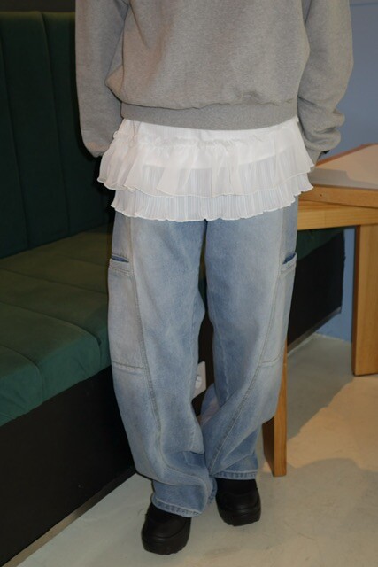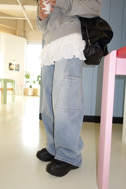 은은한 워싱 컬러가 캐주얼한 분위기를 더해주고, 사이드 포켓 디테일이 더해져 실용적이면서도 멋스러워요