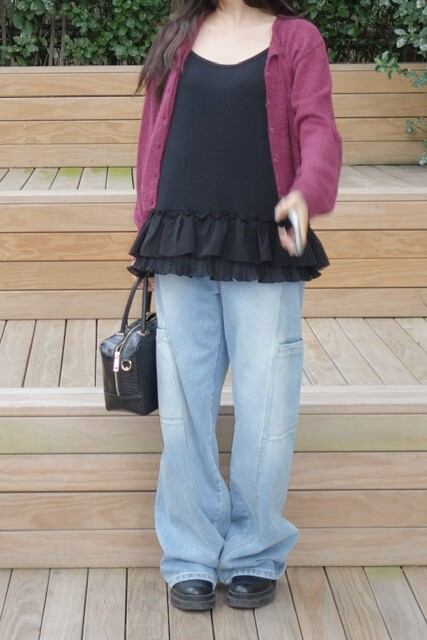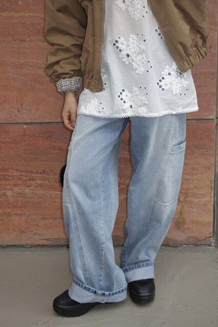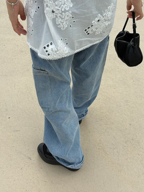 이 데님 팬츠는 여유 있는 와이드핏으로 편안하면서도 트렌디한 무드를 연출해줘요