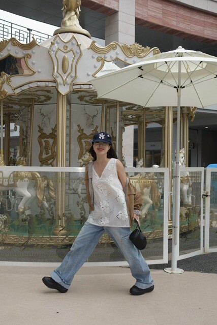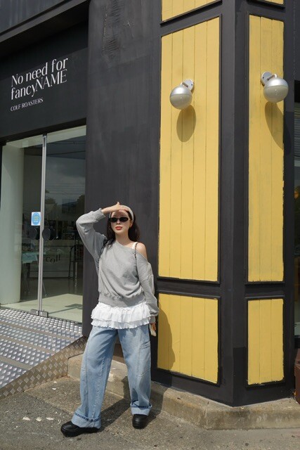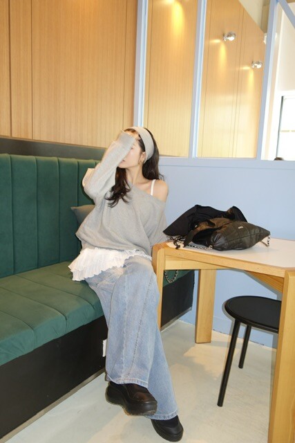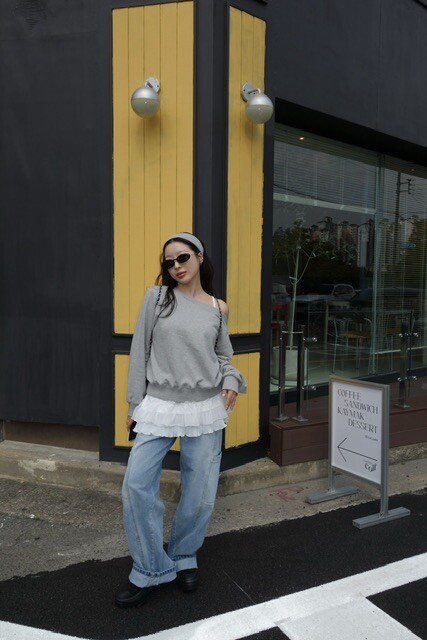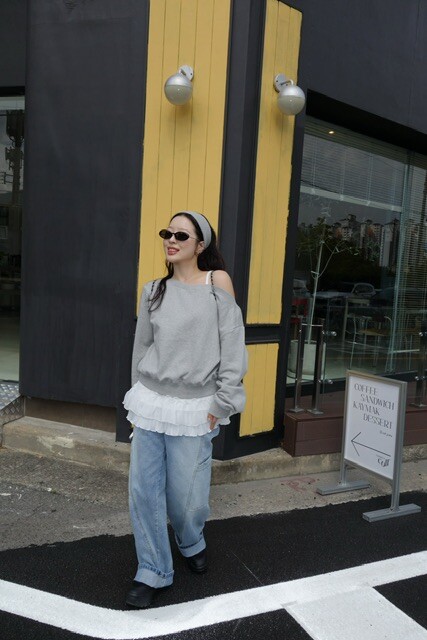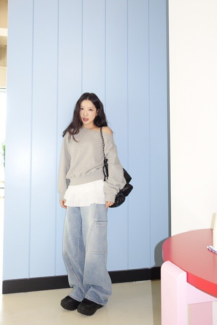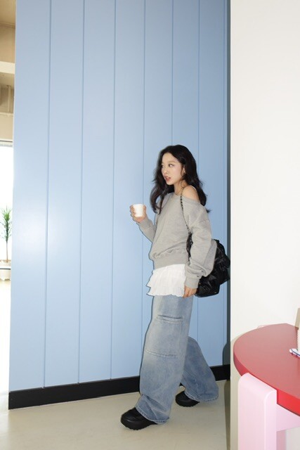 와이드하게 떨어지는 실루엣이 다리 라인을 자연스럽게 커버해주면서 편안한 착용감을 줘요
