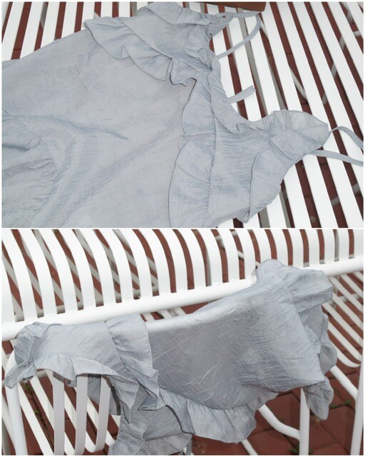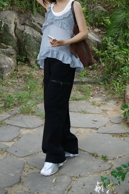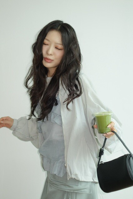 프릴 디테일이 사랑스럽게 포인트가 되어 로맨틱한 무드를 살려줍니다.
