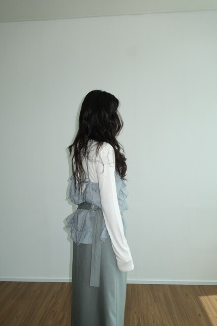 상단과 하단에 이어진 프릴 장식은 움직일 때마다 자연스럽게 흐르는 실루엣을 완성해 주고,
