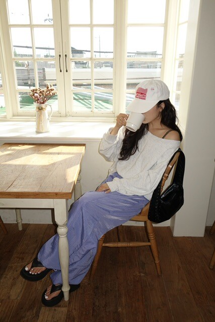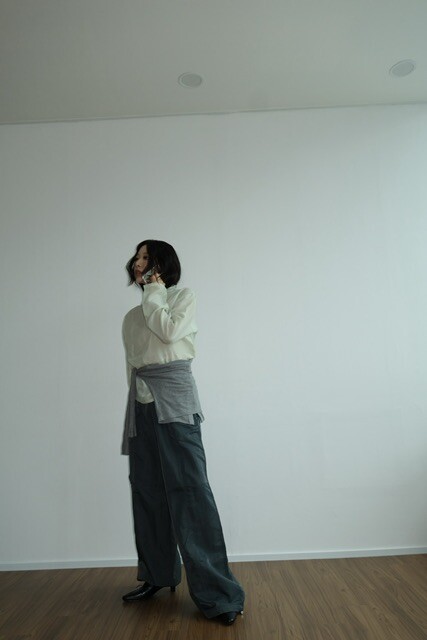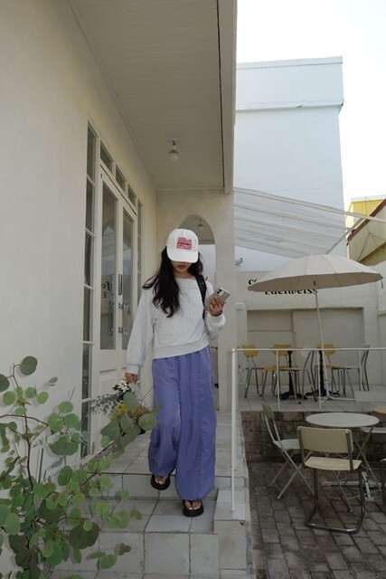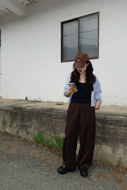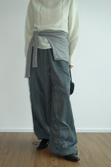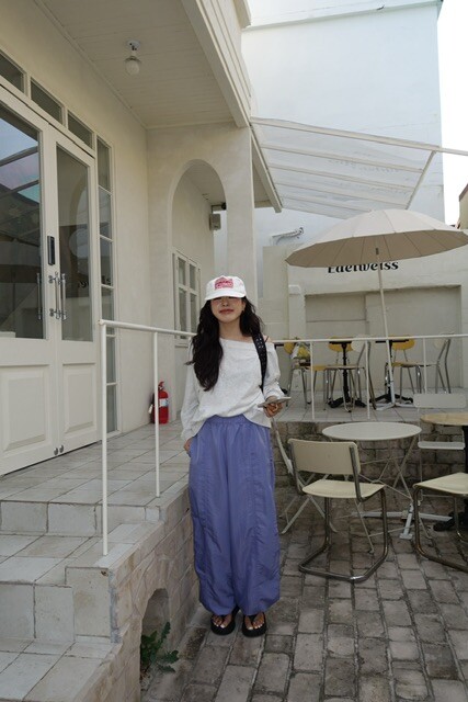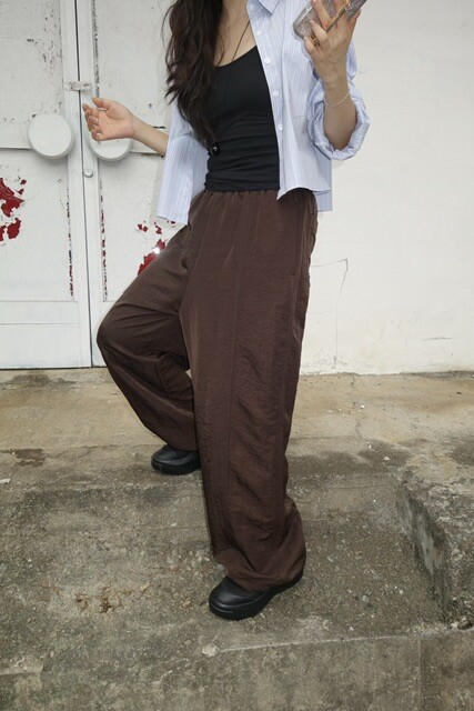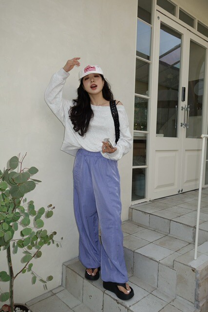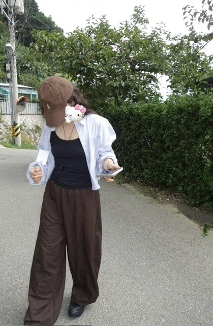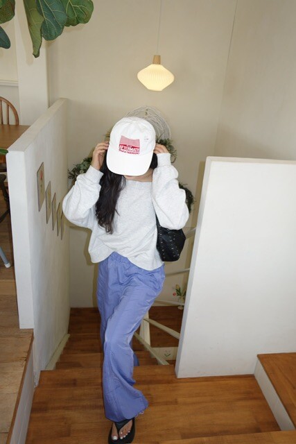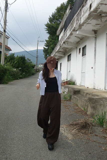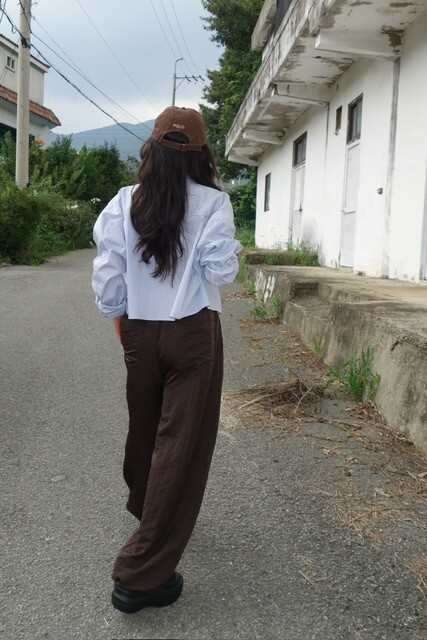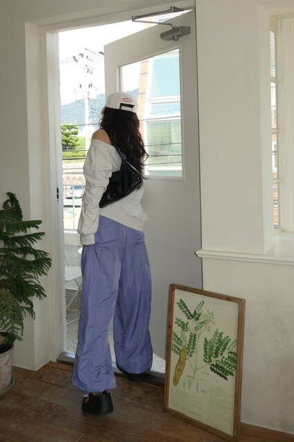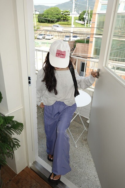 밑단 스트링을 조여 조거 스타일로 연출하면 또 다른 분위기를 낼 수 있어 활용도가 높은 아이템이에요.