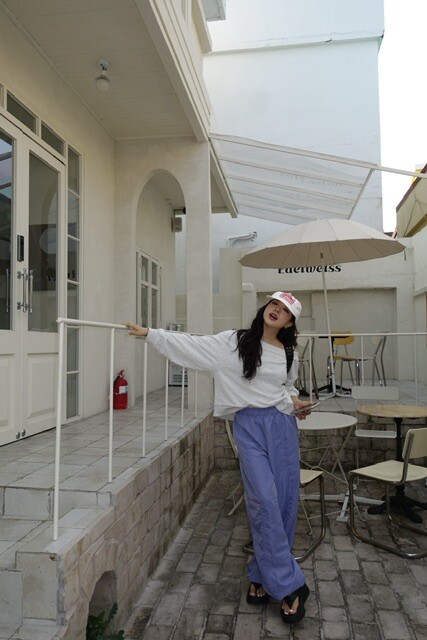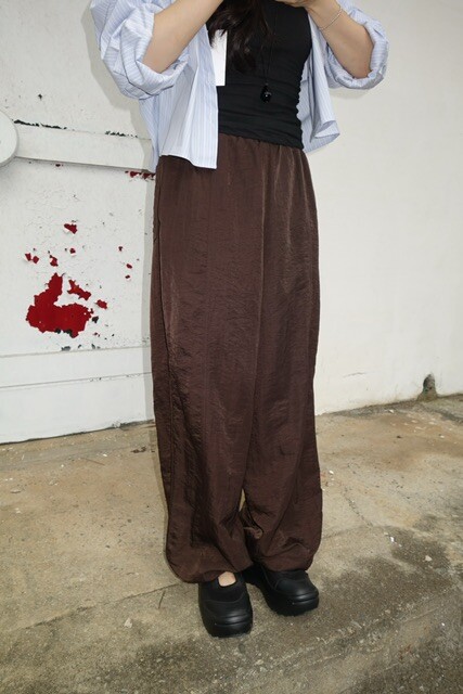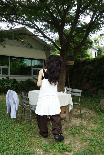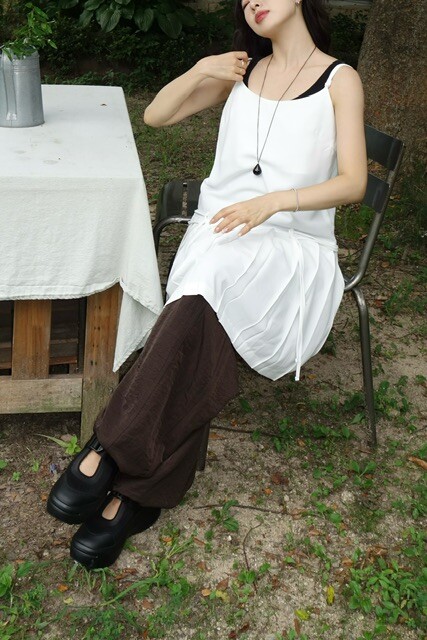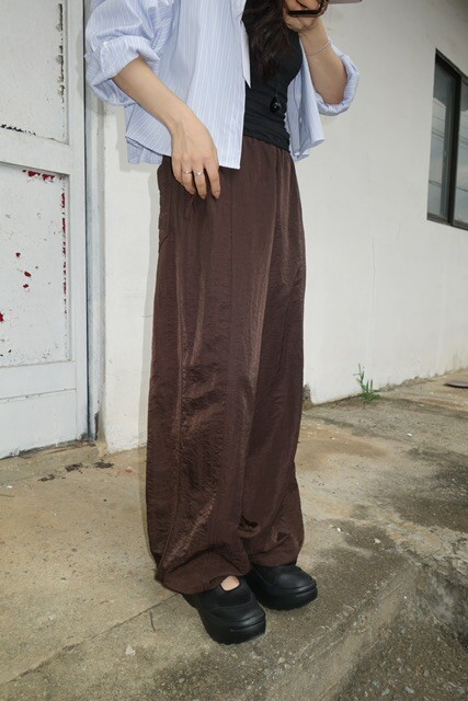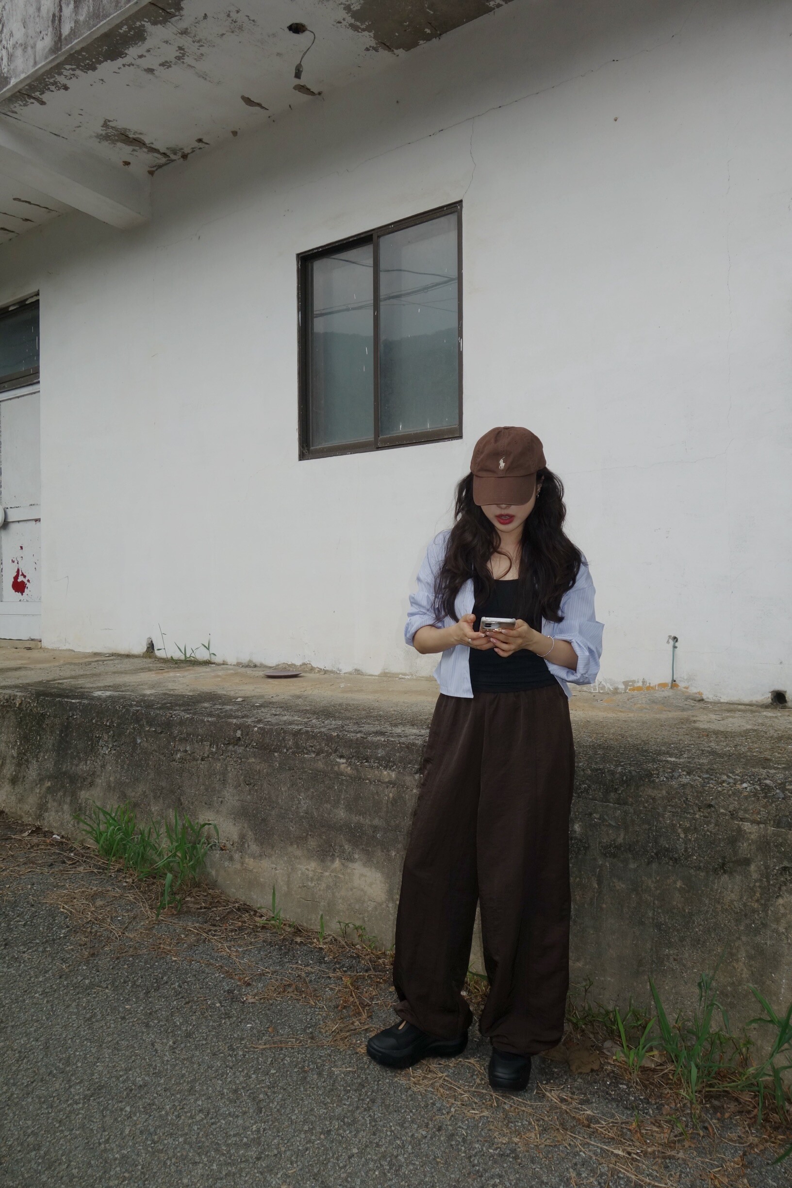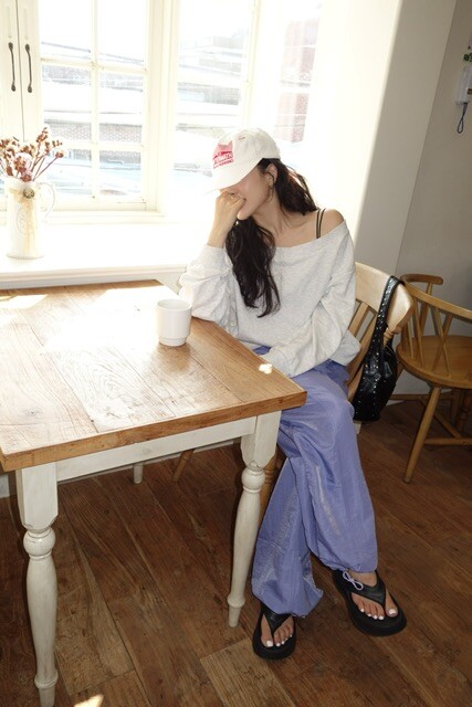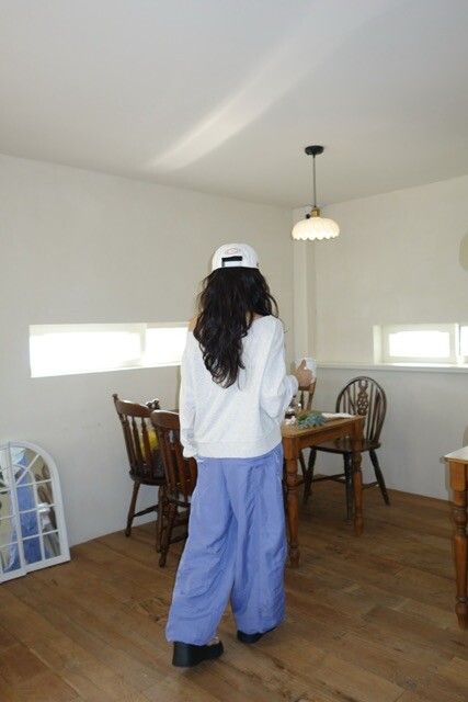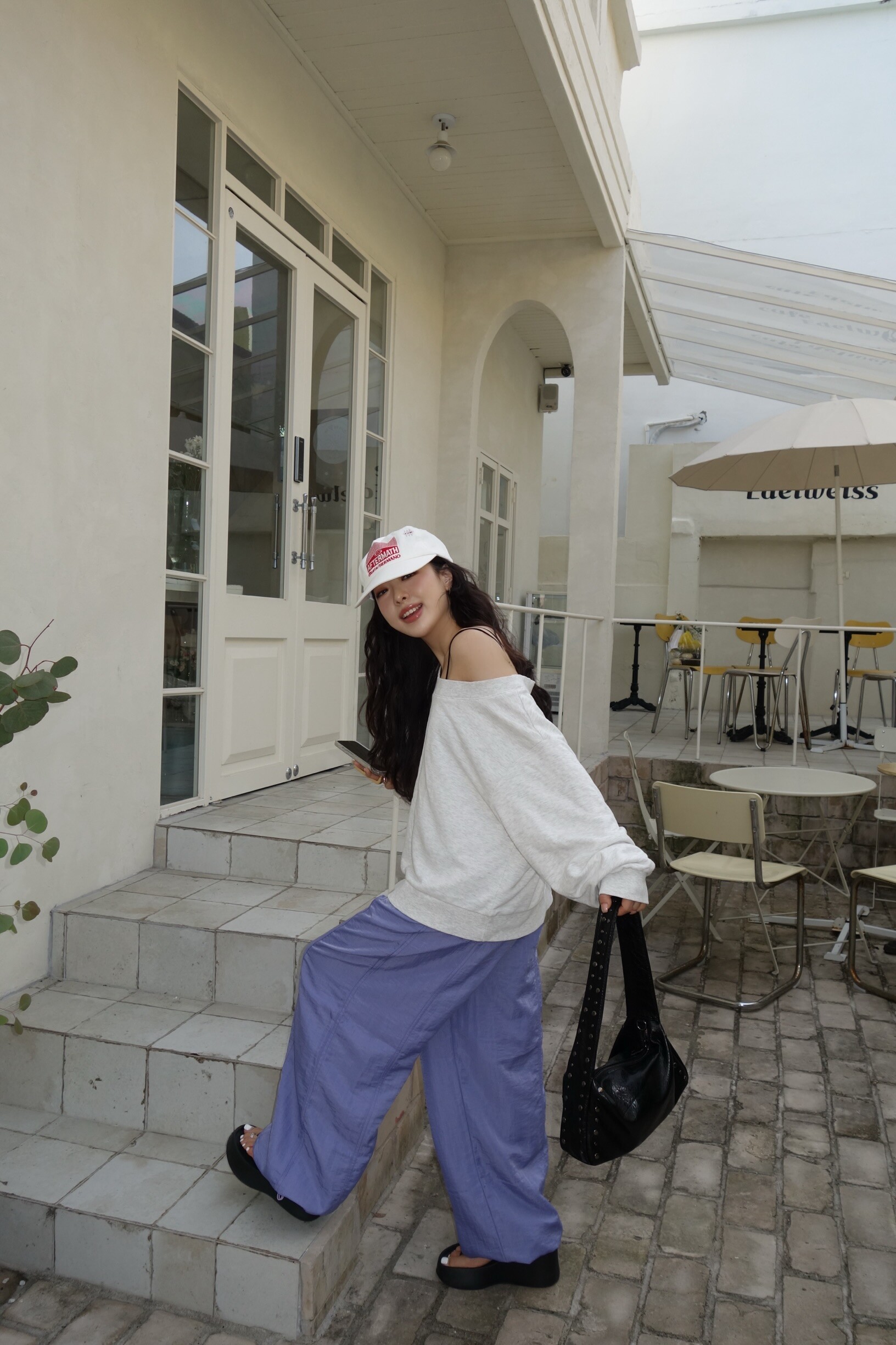 밑단 스트링을 조여 조거 스타일로 연출하면 또 다른 분위기를 낼 수 있어 활용도가 높은 아이템이에요.