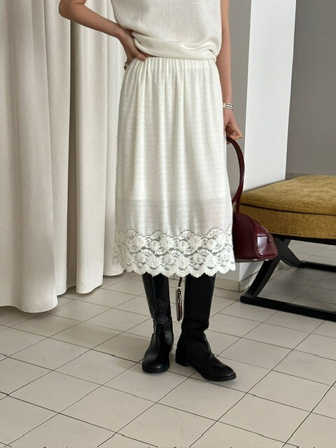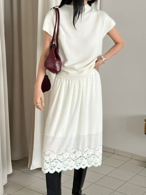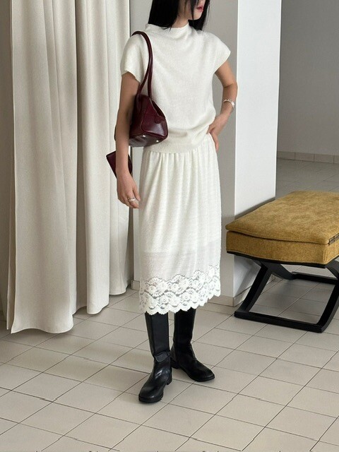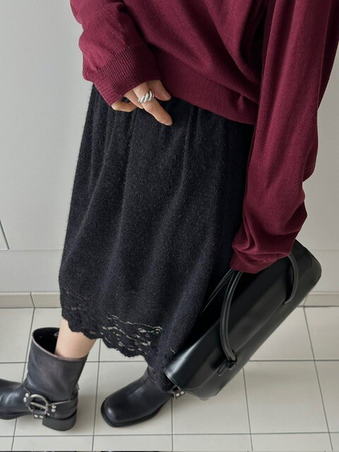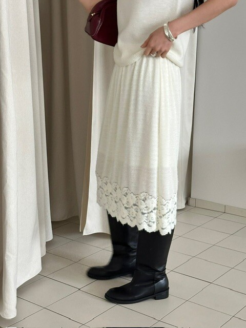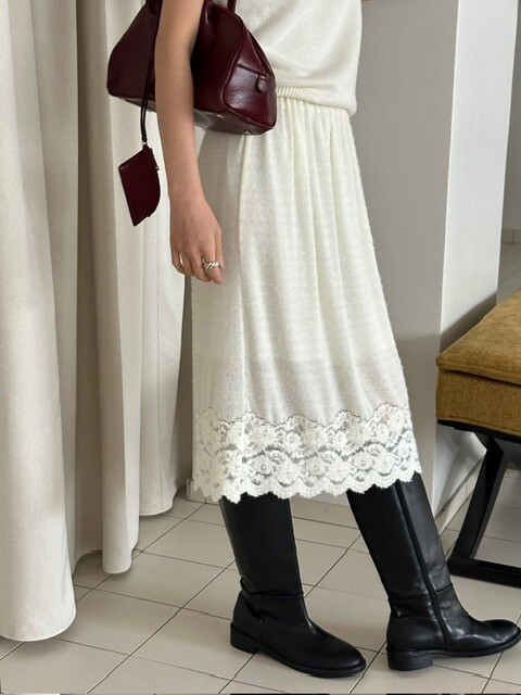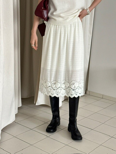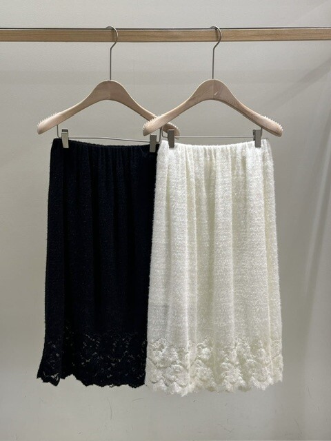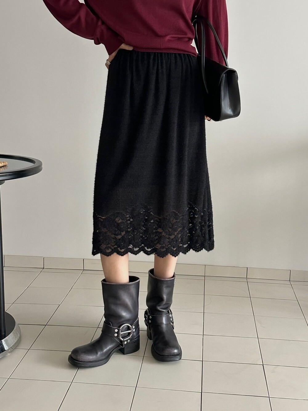 감각적인 무드가 느껴지는 레이스 포인트 니트 스커트🤍🖤