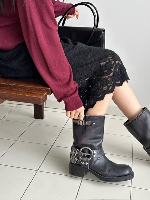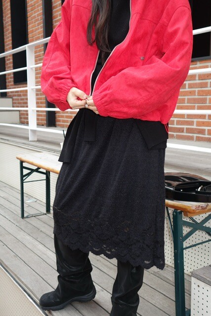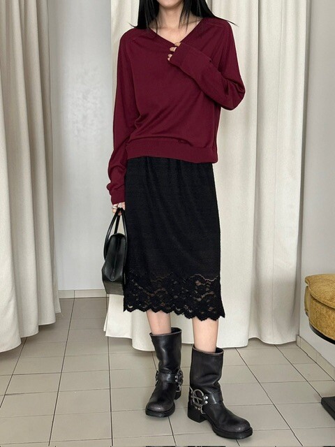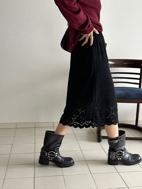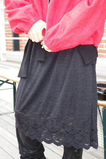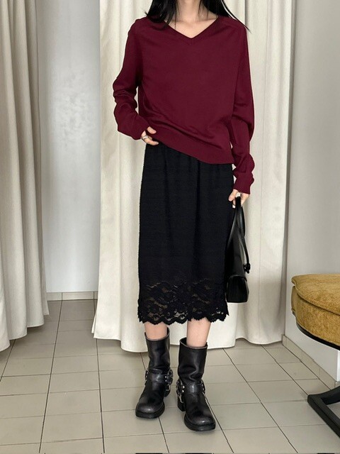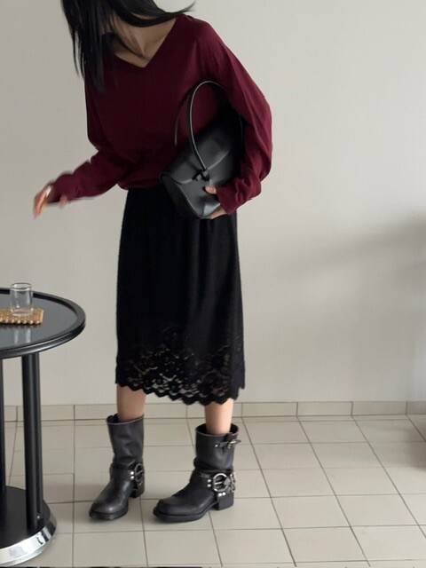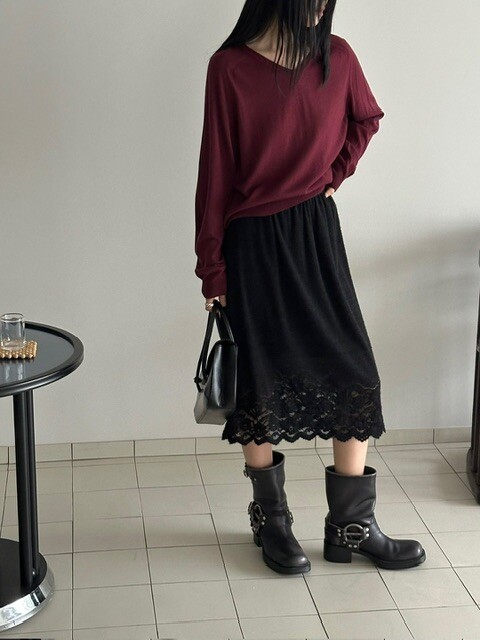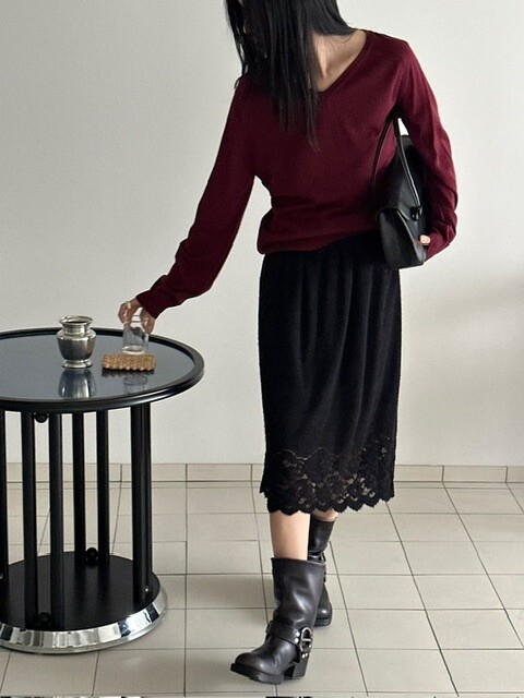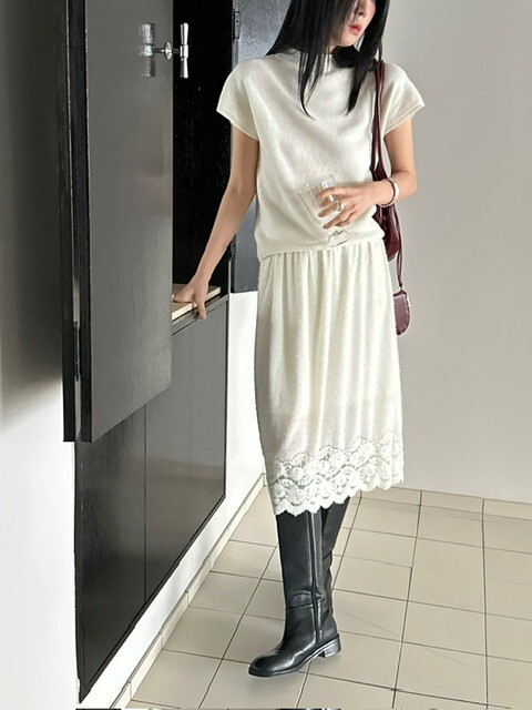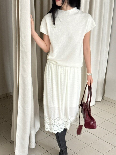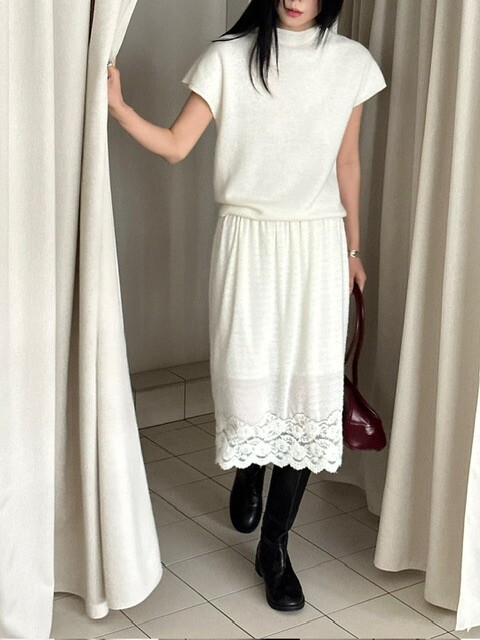 감각적인 무드가 느껴지는 레이스 포인트 니트 스커트🤍🖤