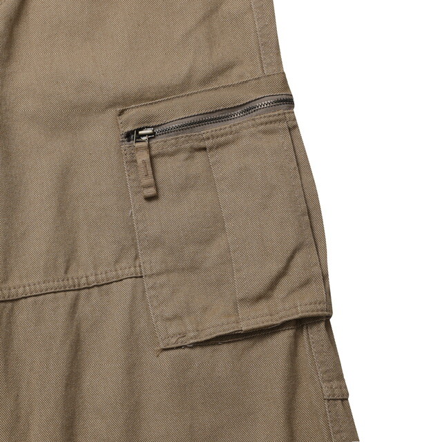 사이드에 위치한 입체적인 카고 포켓은 넉넉한 수납력을 제공하며, 지퍼와 플랩 디테일을 더해 안정감과 스타일 포인트를 동시에 살렸습니다. 전면부에는 내구성이 뛰어난 YKK 지퍼를 사용해 견고하면서도 부드러운 사용감을 더했습니다.