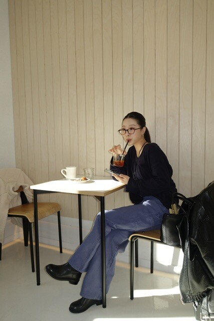 “가볍게 흐르는 핏이 여리함을 만들어주는 데일리 브이넥.”