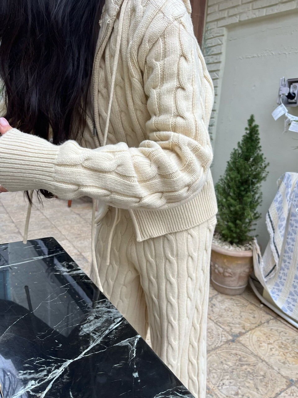베이직한 디자인의 꽈배기 짜임 디테일이 더해져