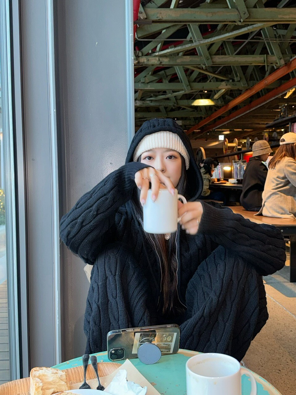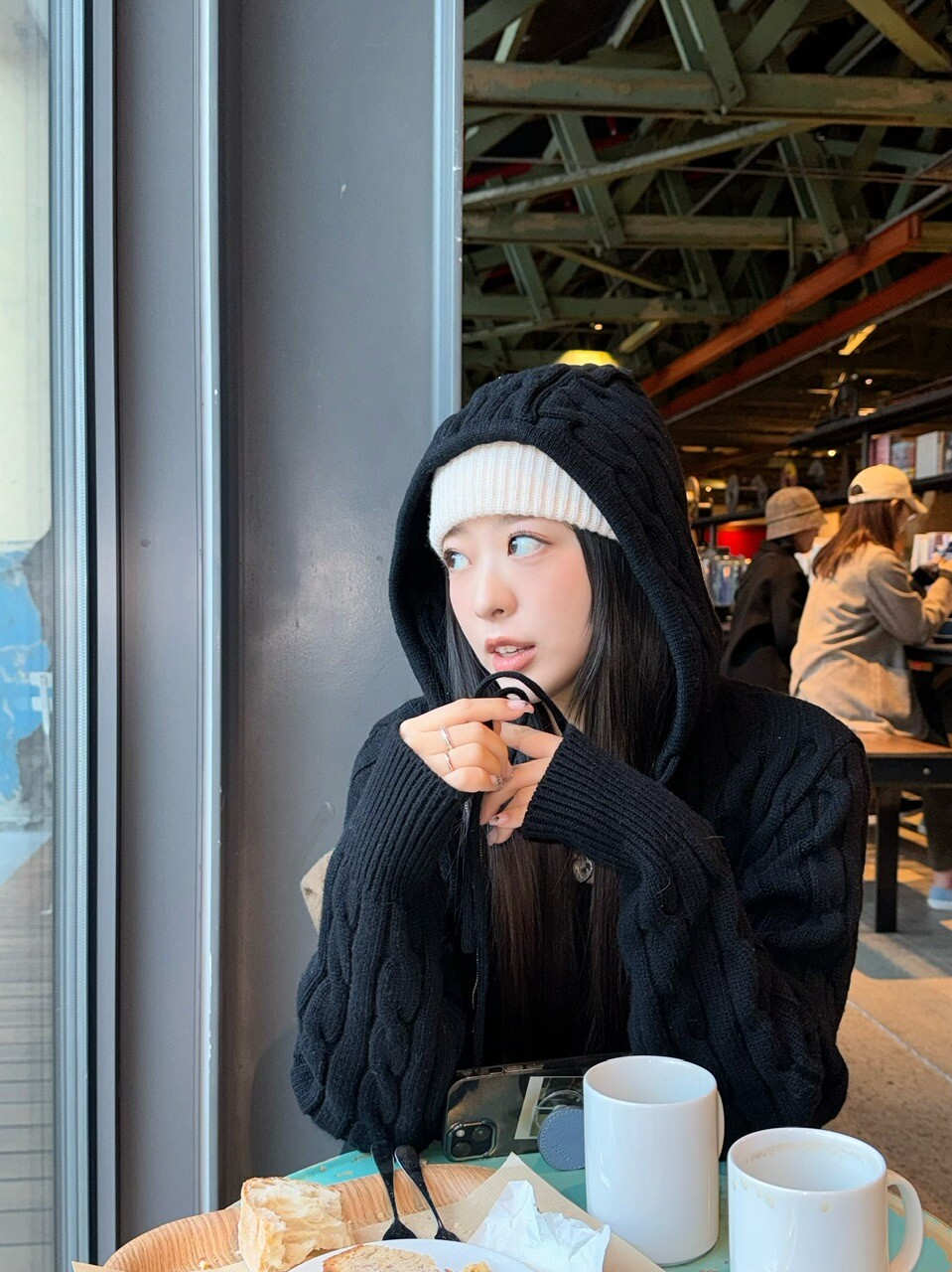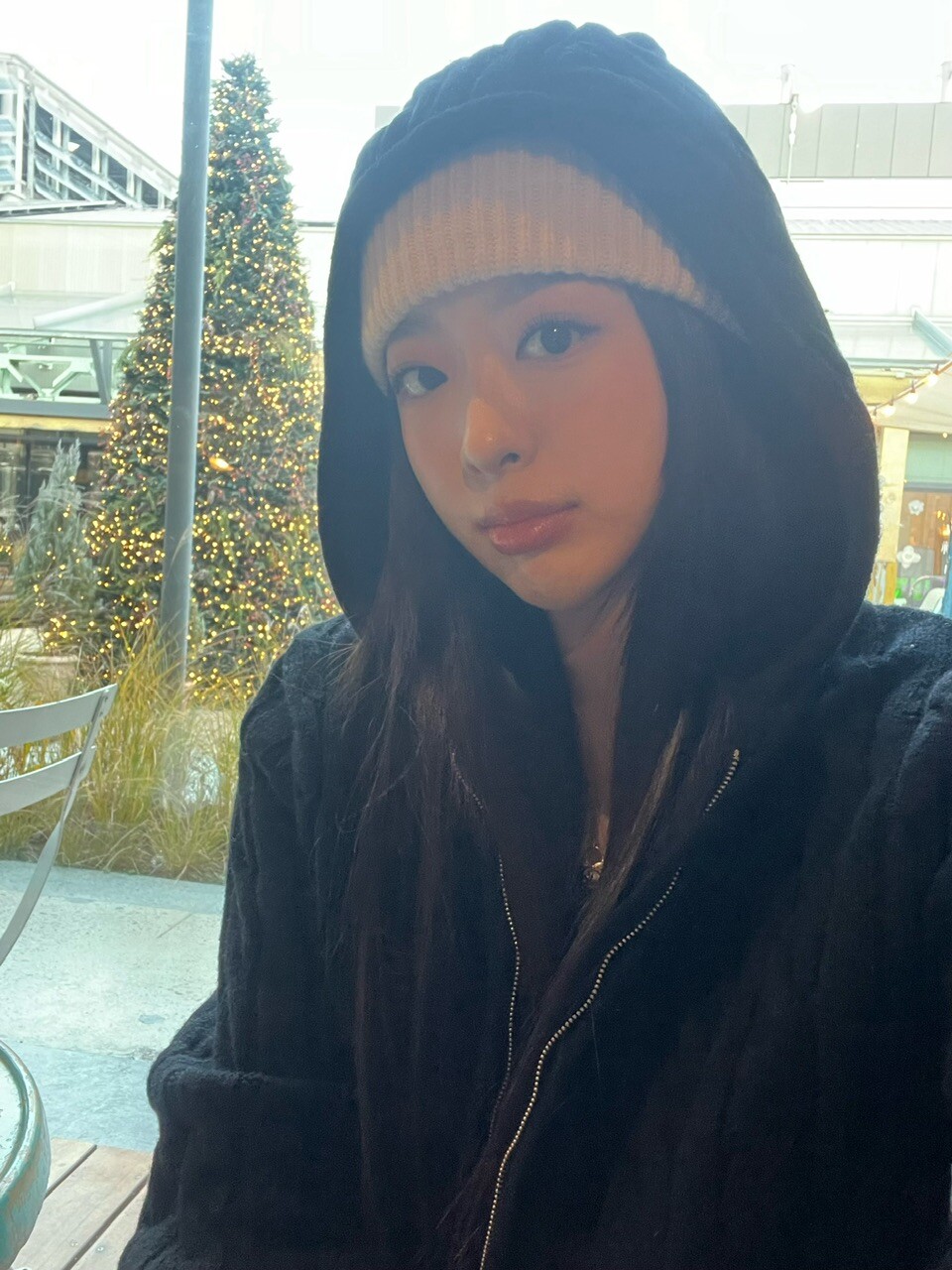 겨울 시즌에 아우터 밖으로 후드만 빼서