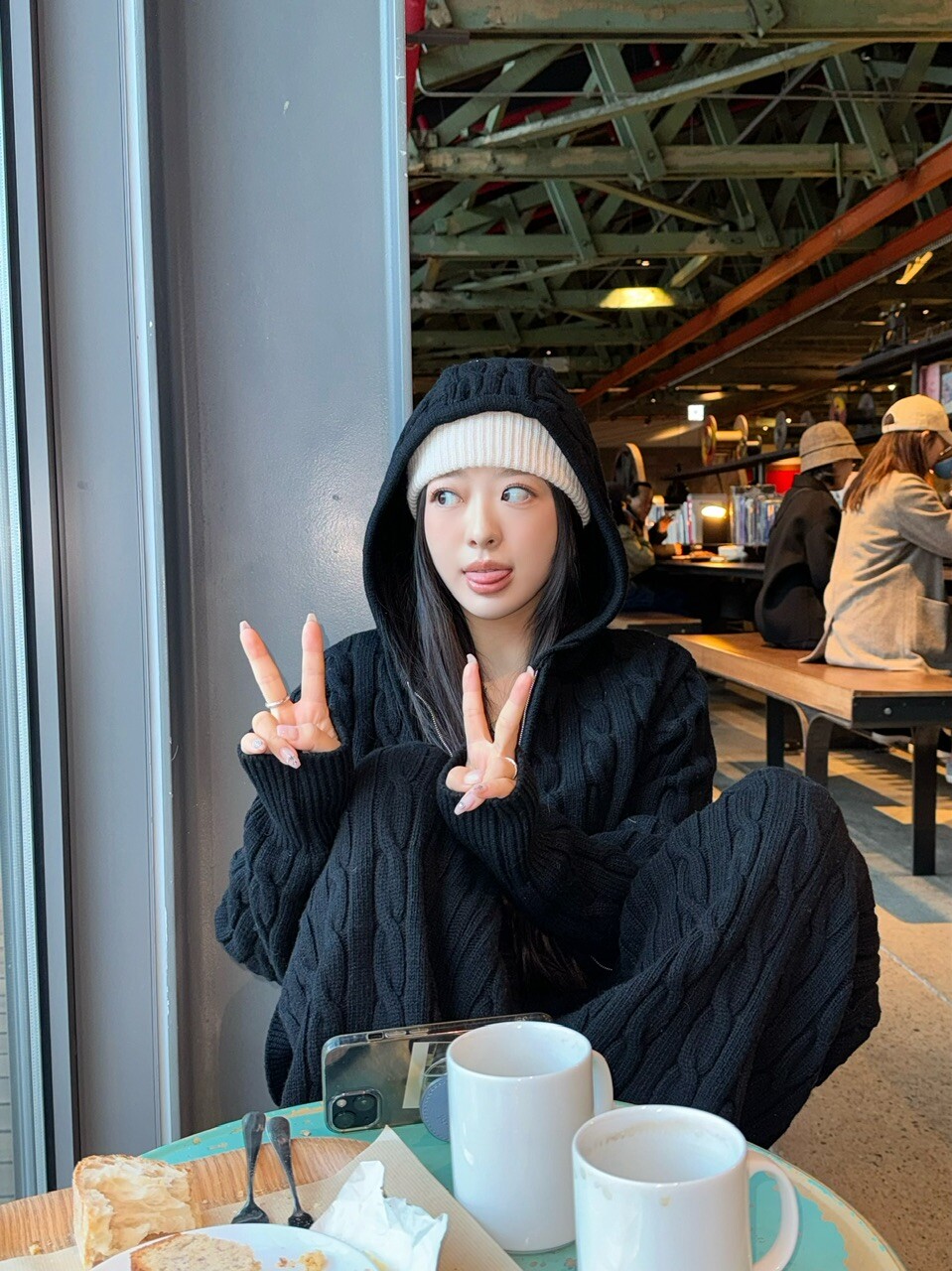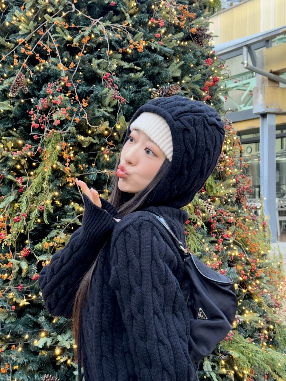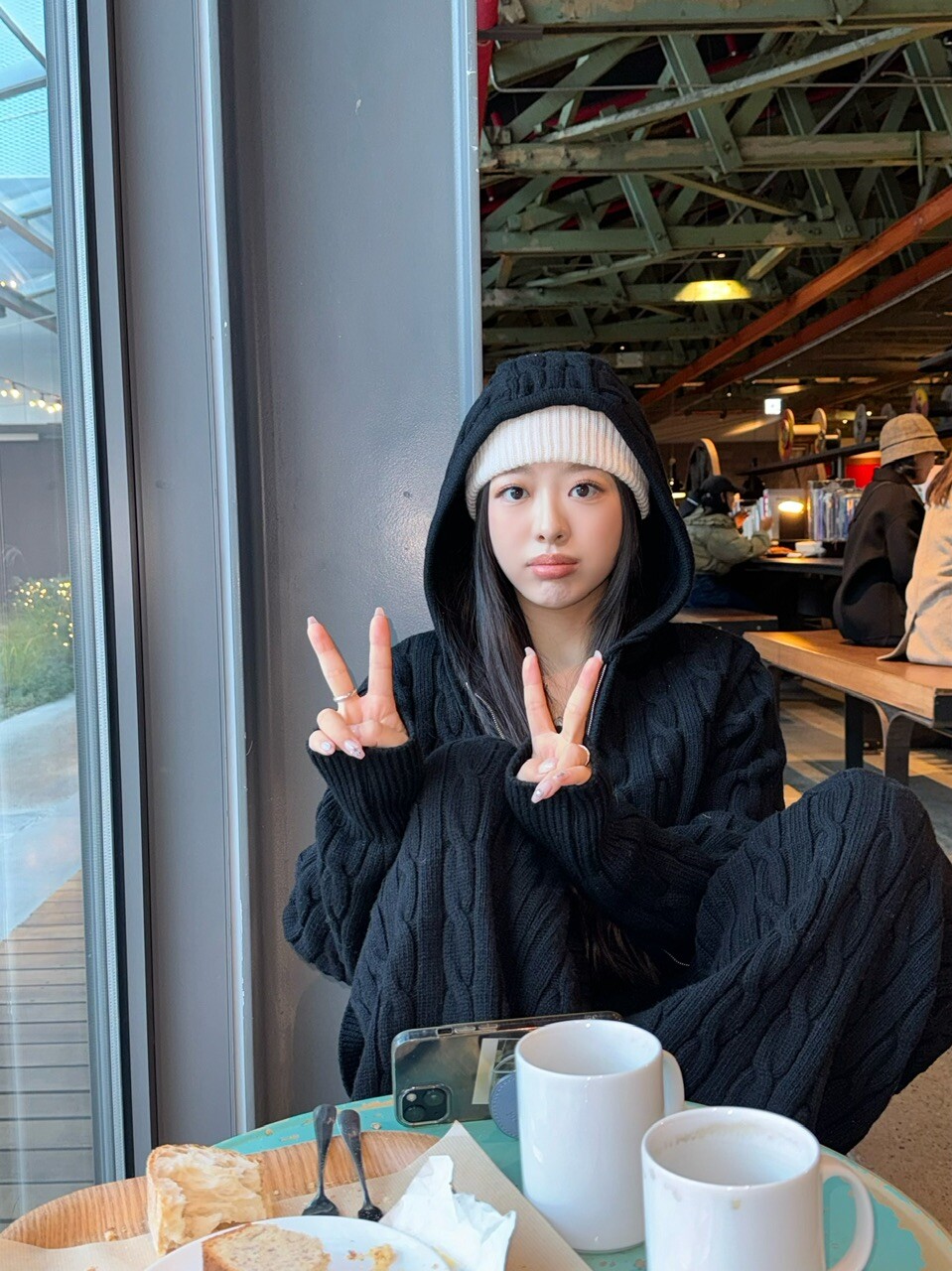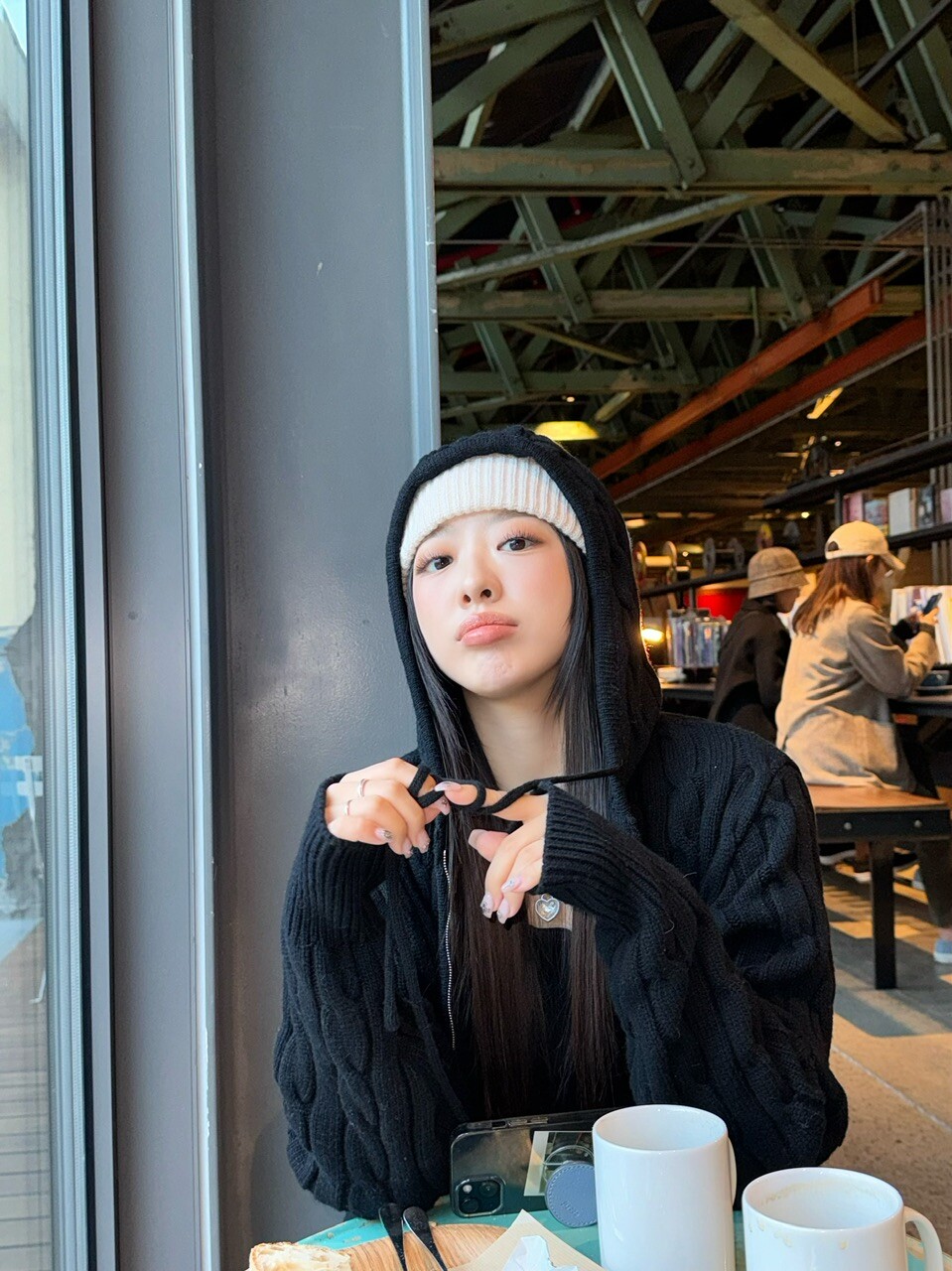 겨울 시즌에 아우터 밖으로 후드만 빼서