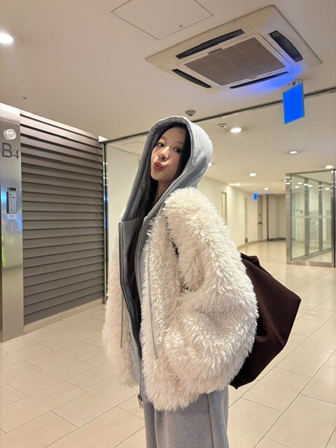 겨울 시즌 눈에 띄는 포인트 퍼 자켓 🤍