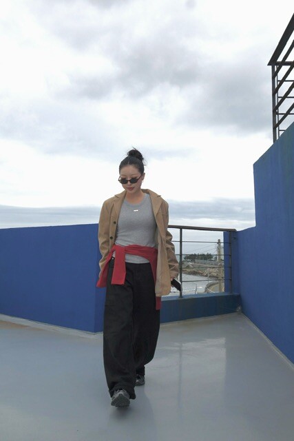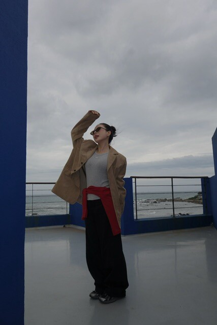 골반을 덮는 기장감으로 단독착용은 물온 레이어드 코디에도
