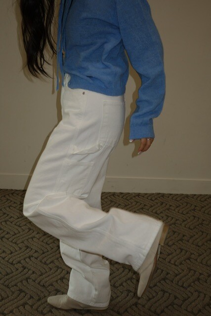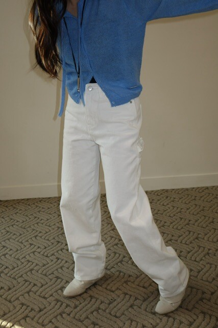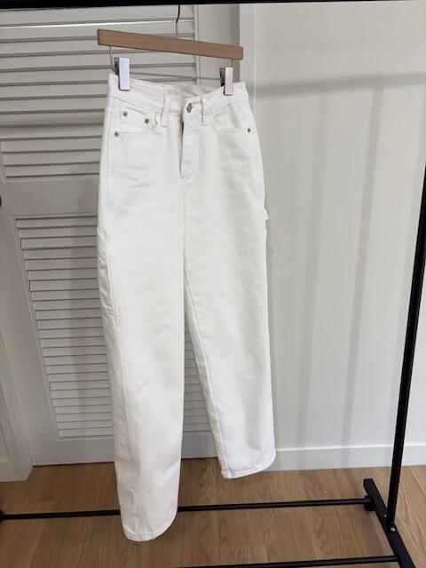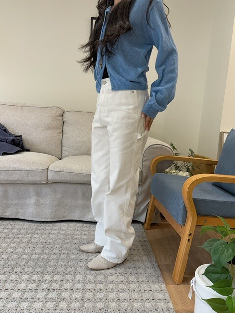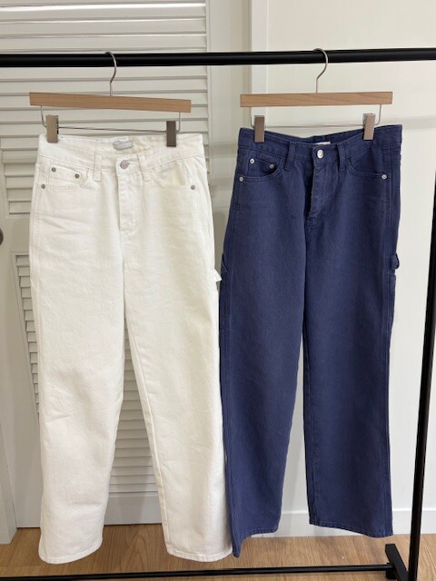 과하지 않은 스트레이트 핏으로 다리 라인을 자연스럽게 커버해주며, 카펜터 특유의 사이드 포켓 디테일이 캐주얼한 무드를 더해줍니다. 탄탄한 코튼 데님 소재로 흐트러짐 없이 떨어지고, 허리 라인은 안정감 있게 잡아줘 착용감이 편안해요. 아이보리와 딥한 네이비 컬러 구성으로 계절에 구애 없이 활용하기 좋으며, 티셔츠·니트·셔츠 어디에나 매치가 쉬워 데일리 팬츠로 손이 자주 가는 아이템입니다. 슬리퍼부터 로퍼, 스니커즈까지 다양한 슈즈와도 자연스럽게 어울려요.