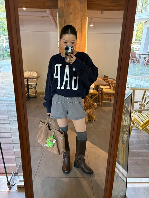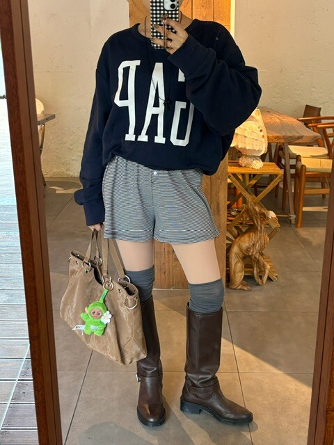 루즈한 니트나 후드와 함께 꾸안꾸 세트처럼 연출하면 핀터레스트 감성 완성되는 아이템이라 추천드려요 :)