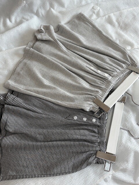잔잔한 스트라이프 패턴으로 클래식하면서도 미니멀한 무드에 허리 전체 밴딩으로 하루 종일 편안한 착용감