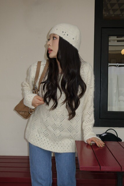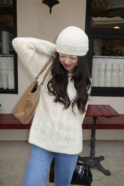 데일리로 편하게 입기 좋은 동시에 포인트 룩으로도 손색없는, 소장 가치 높은 니트&비니 세트 추천합니다..🤍