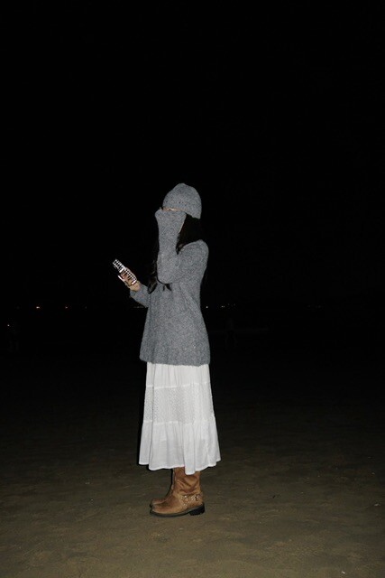 따뜻한 아이보리 톤으로 통일된 니트 + 비니 세트입니다
