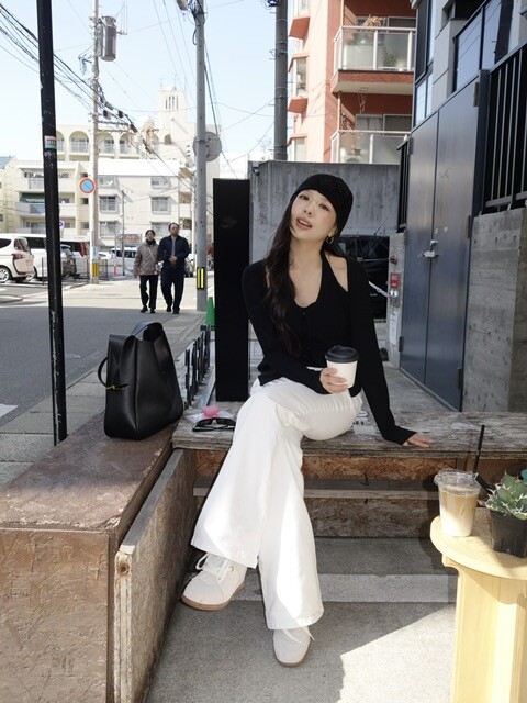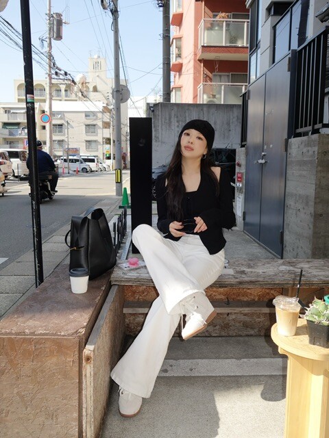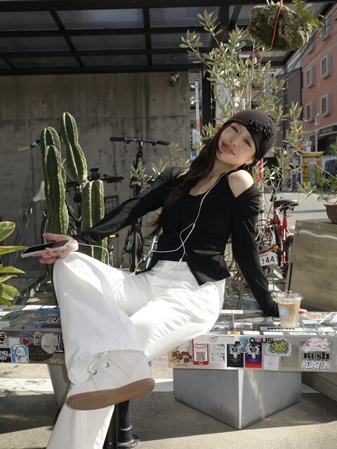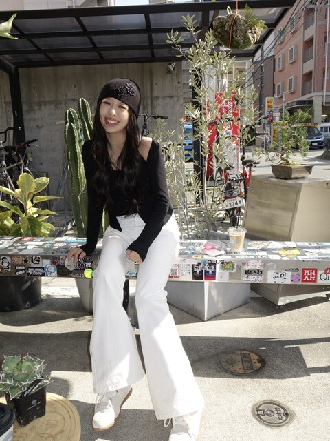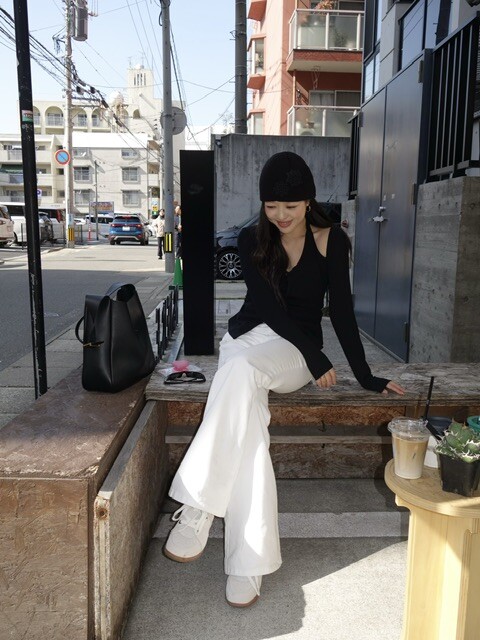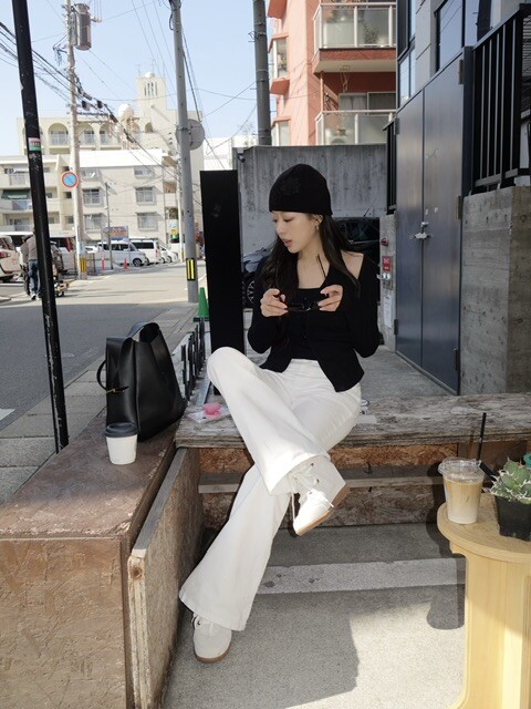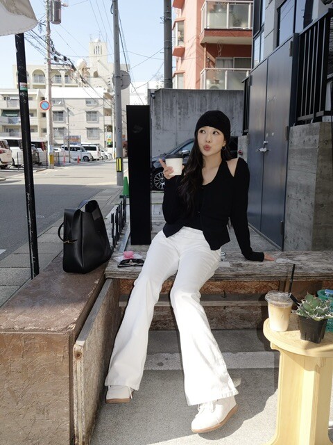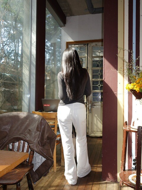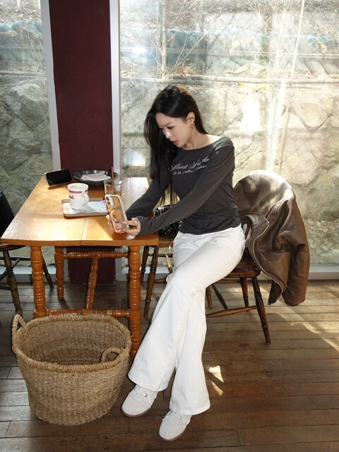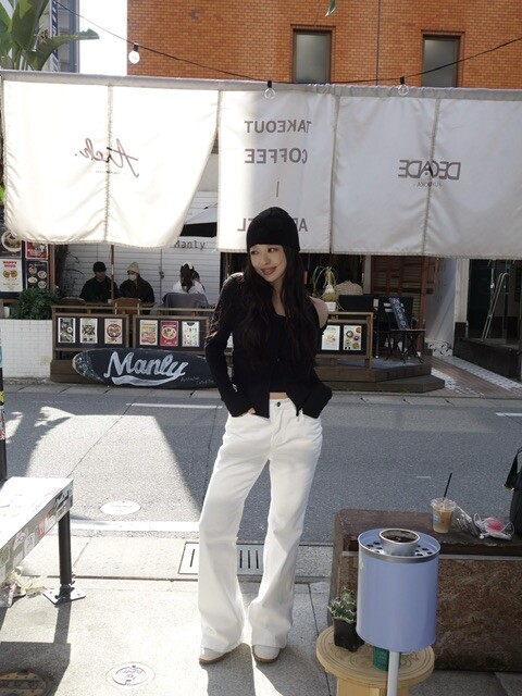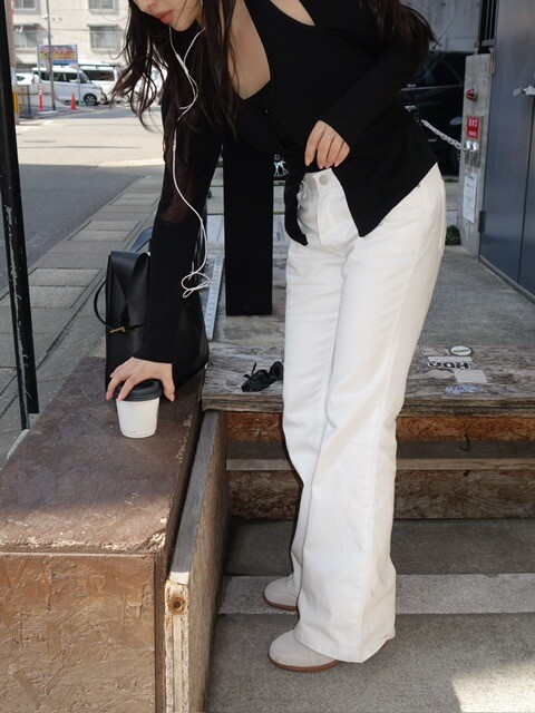 화이트 팬츠 특성상 비침 많이 궁금해하실 것 같은데스킨톤 이너 착용하면 전혀 신경 쓰이지 않아요