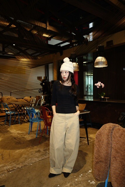 요즘 트렌디하게 떠오른 커브 실루엣 팬츠예요