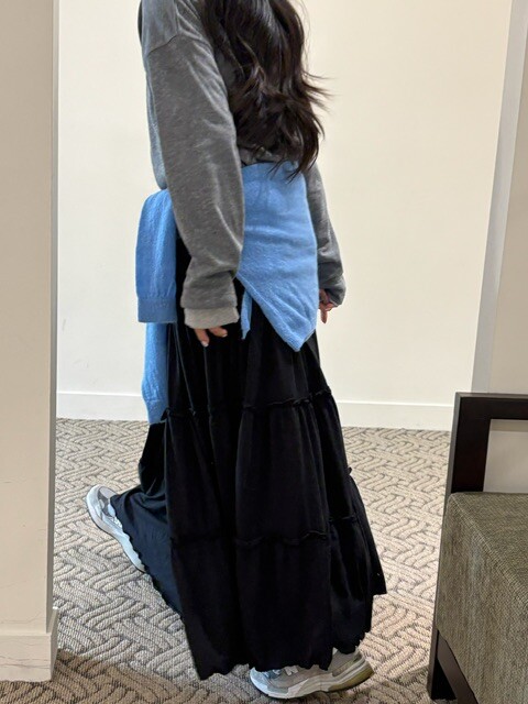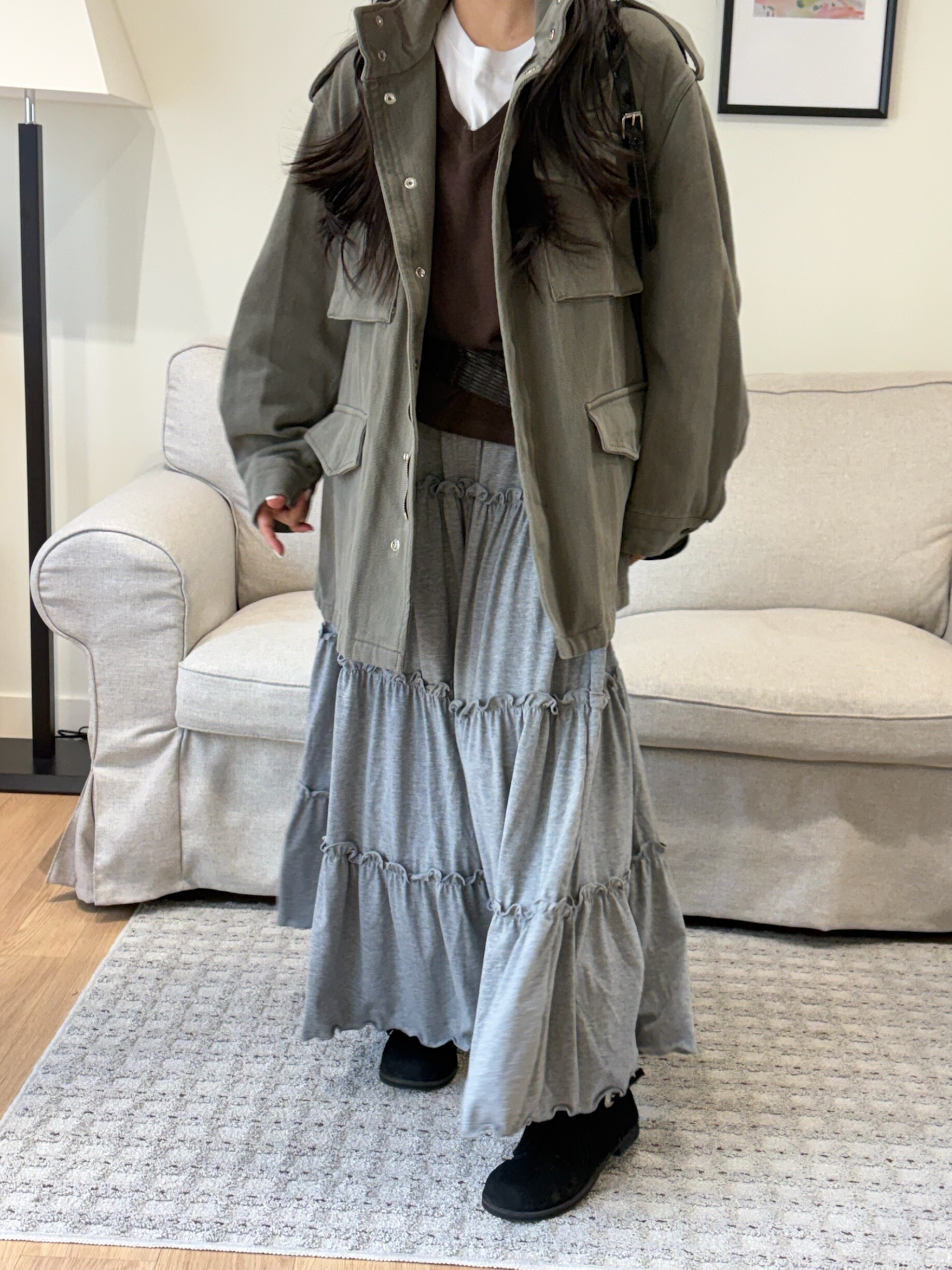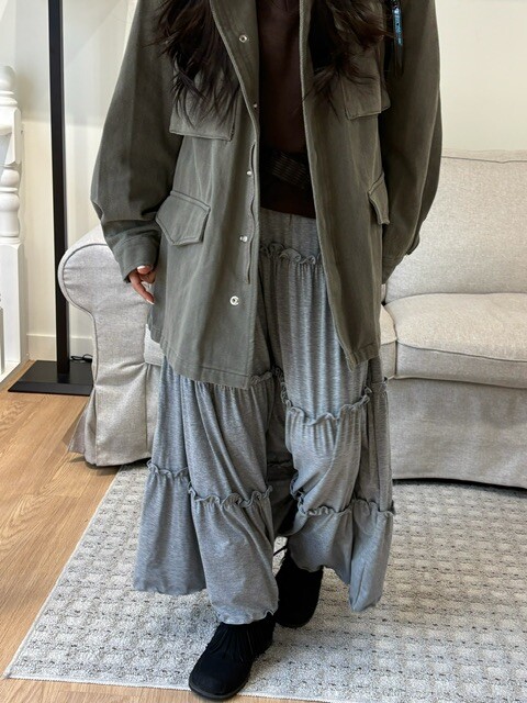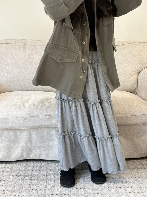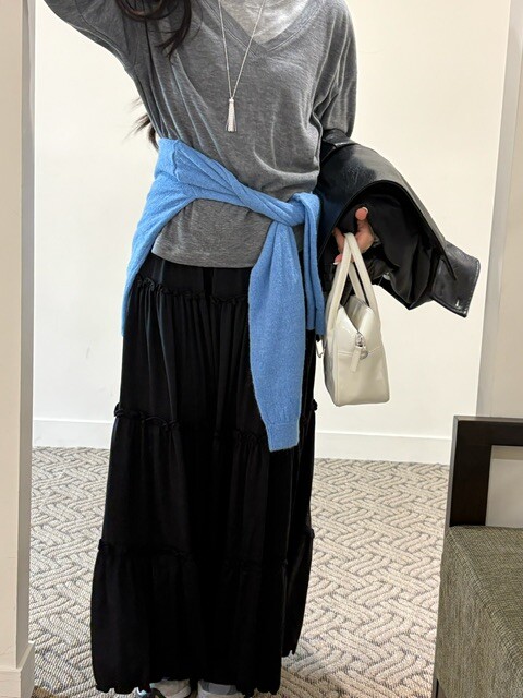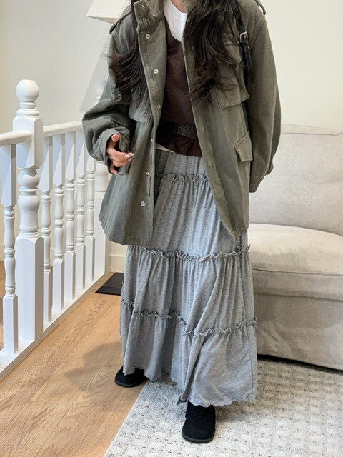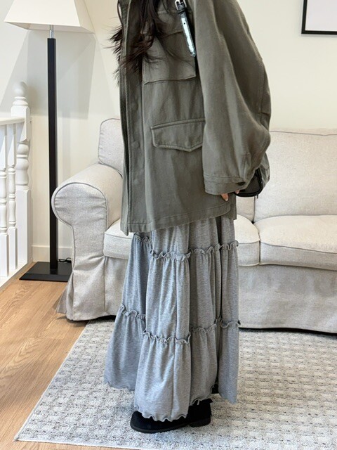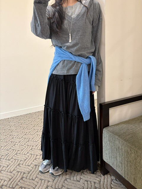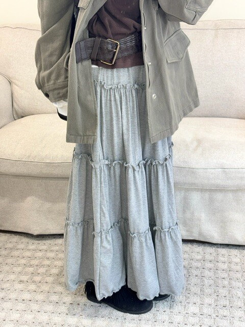 “걸을 때마다 분위기가 살아나는 티어드 스커트.”