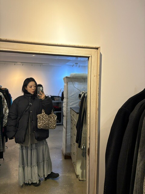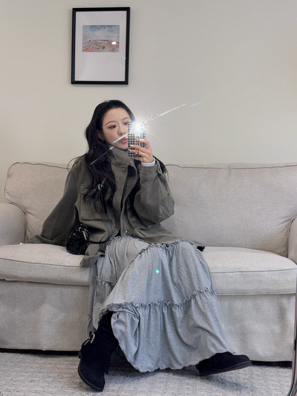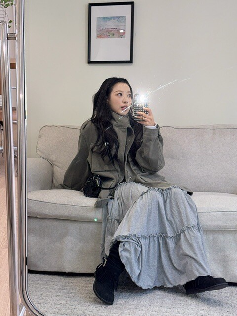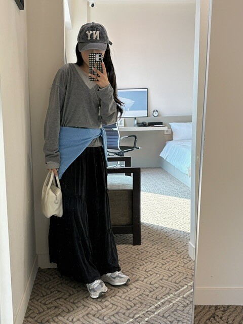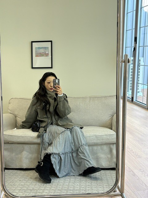 발목까지 내려오는 롱 기장감이 하체 라인을 자연스럽게 커버해줘요.