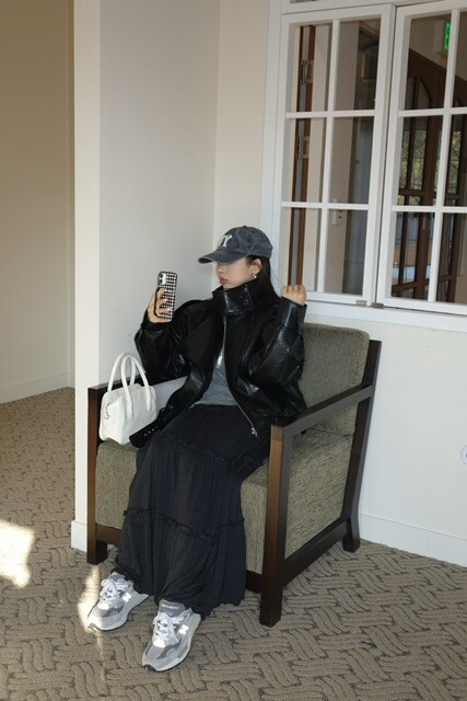 그레이와 블랙 컬러 모두 차분한 분위기로 다양한 아우터와도 자연스럽게 어울려요.