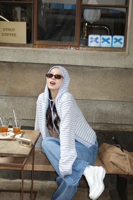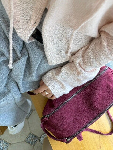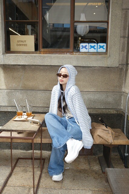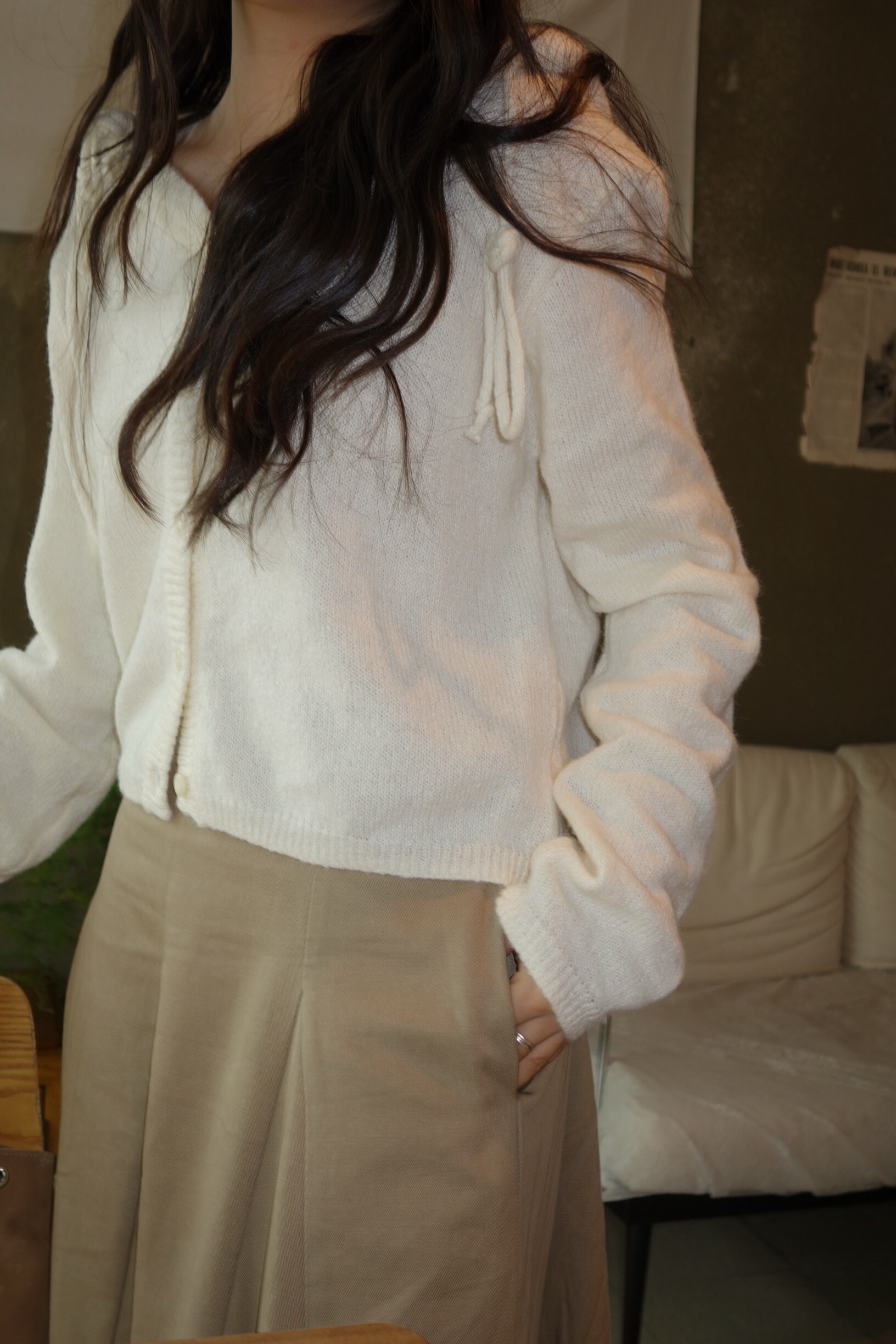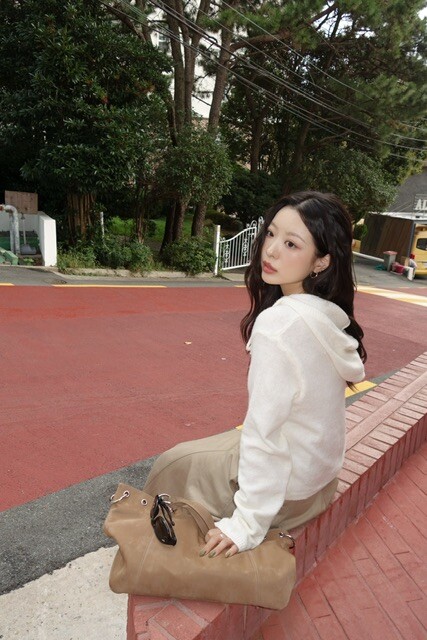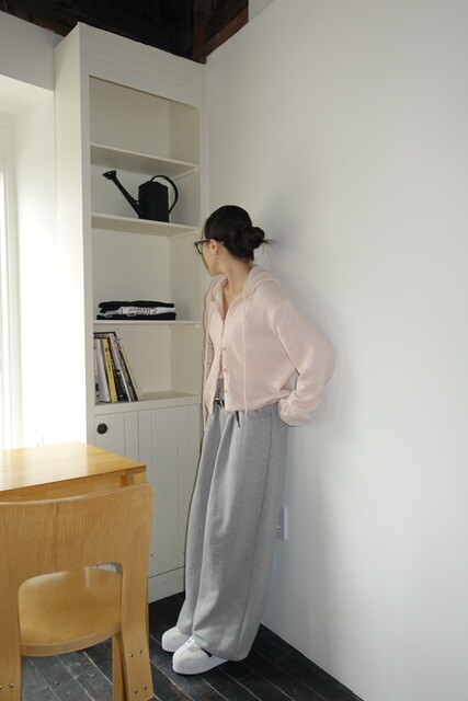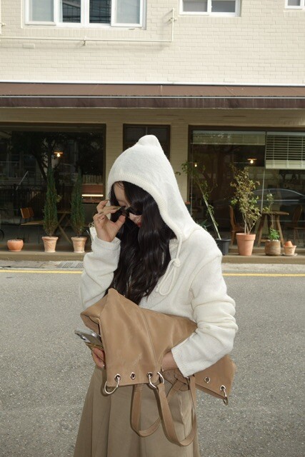 니트 후드 가디건이에요