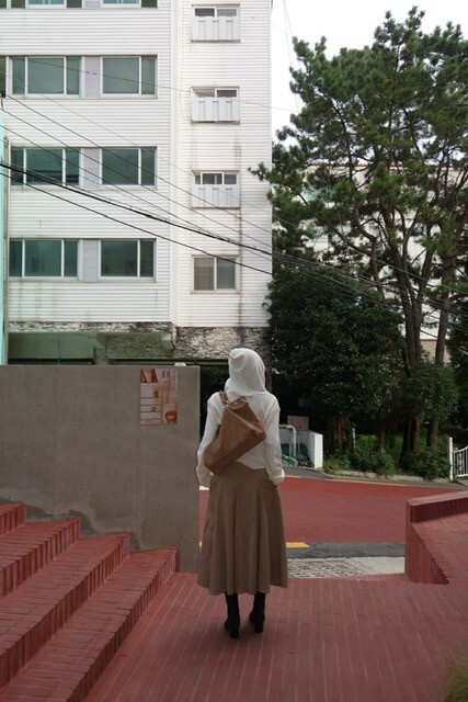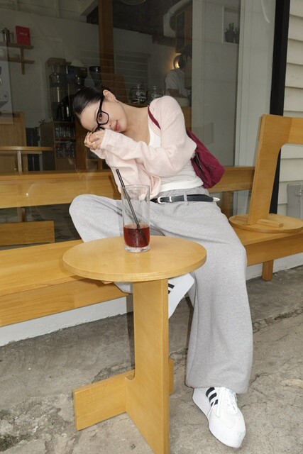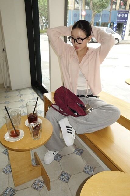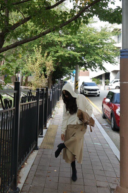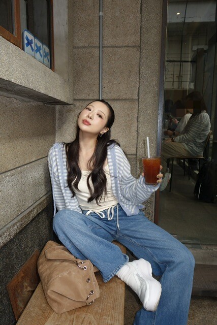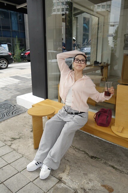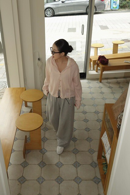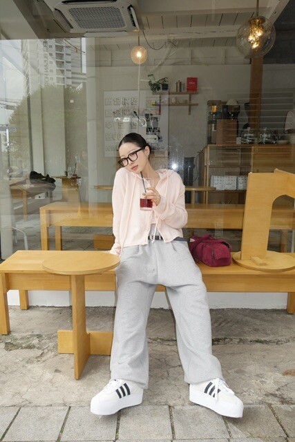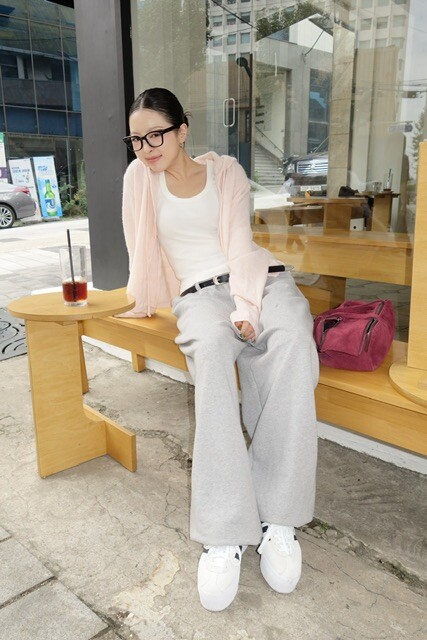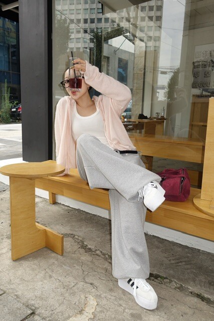 살짝 크롭한 기장감이 다리라인을 길어 보이게 만들어주며,