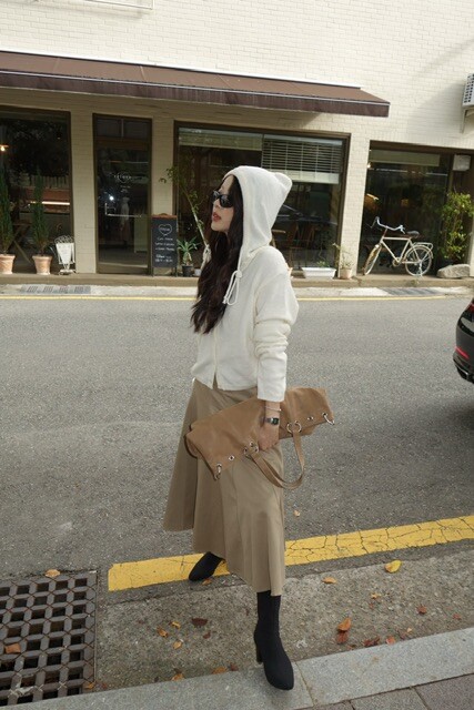 후드 디테일이 더해져 캐주얼한 무드로 연출하기 좋고,