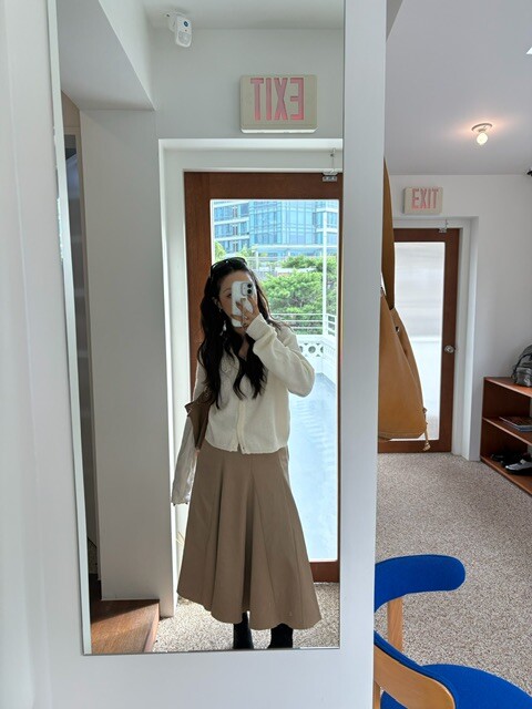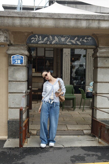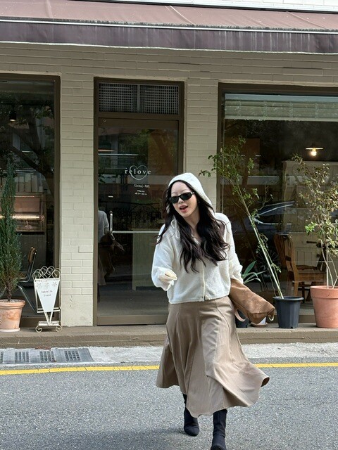 하이웨스트 팬츠나 원피스 위에 가볍게 툭 걸쳐도 예쁜 실루엣을 완성해줍니다